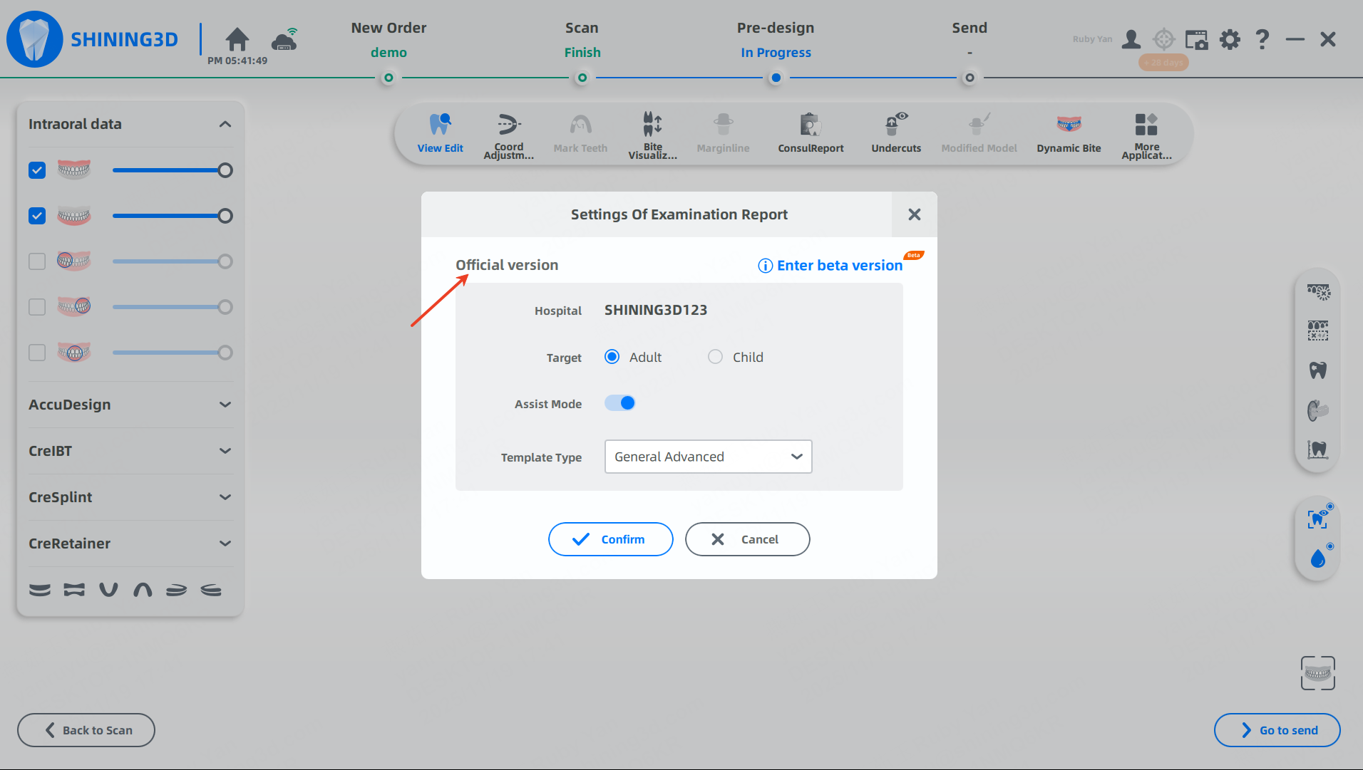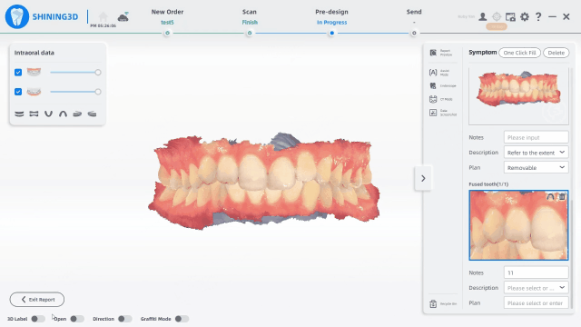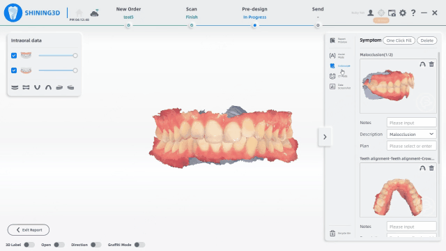 The oral health examination report is a visual tool focused on doctor-patient communication. The report utilizes AI to automatically identify oral diseases and provides visual information and treatment suggestions, allowing users to easily and accurately understand the patient's oral health status and design corresponding treatment plans. The new version of the software offers two different report versions: the official version, which emphasizes editing features, and the trial version, which focuses on communication features.