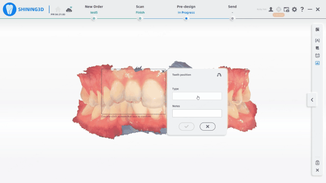 - In the pop-up window, select the tooth position, disease type, and edit notes.