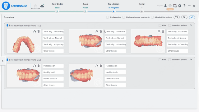The AI function can only distinguish the most common 3 kinds of diseases: caries, pigmentation and calculus, whereas users can add others in the symptom edition stage.