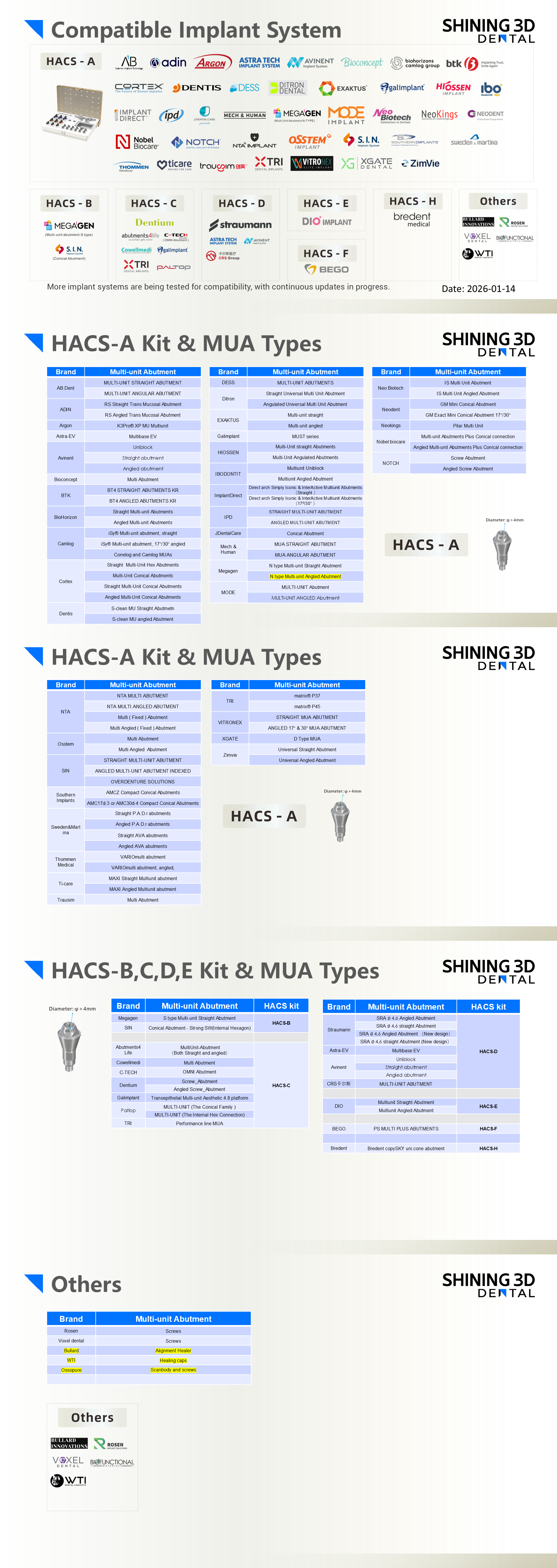 Currently, the Aoralscan Elite high-accuracy coded scan bodies can only be mounted on multi-unit abutments. Here is a list of all tested brands and types for now. More implant systems are being tested for compatibility so the list will keep growing. There are also some instructions for how to find the correct Coded scanbody kit for the MUAs you are using.
