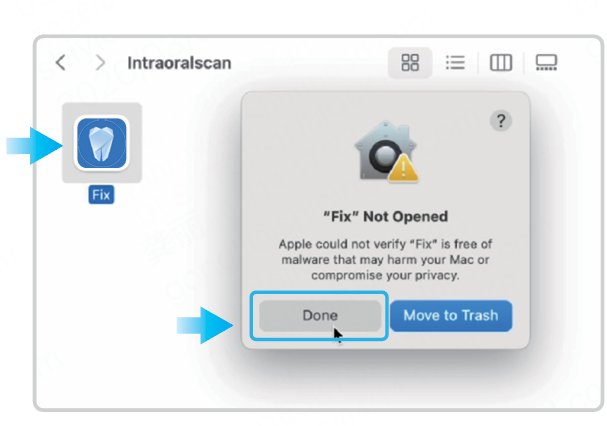 1. First, when you click “Fix” in the installation package, the system will display a message indicating that the app cannot be opened.