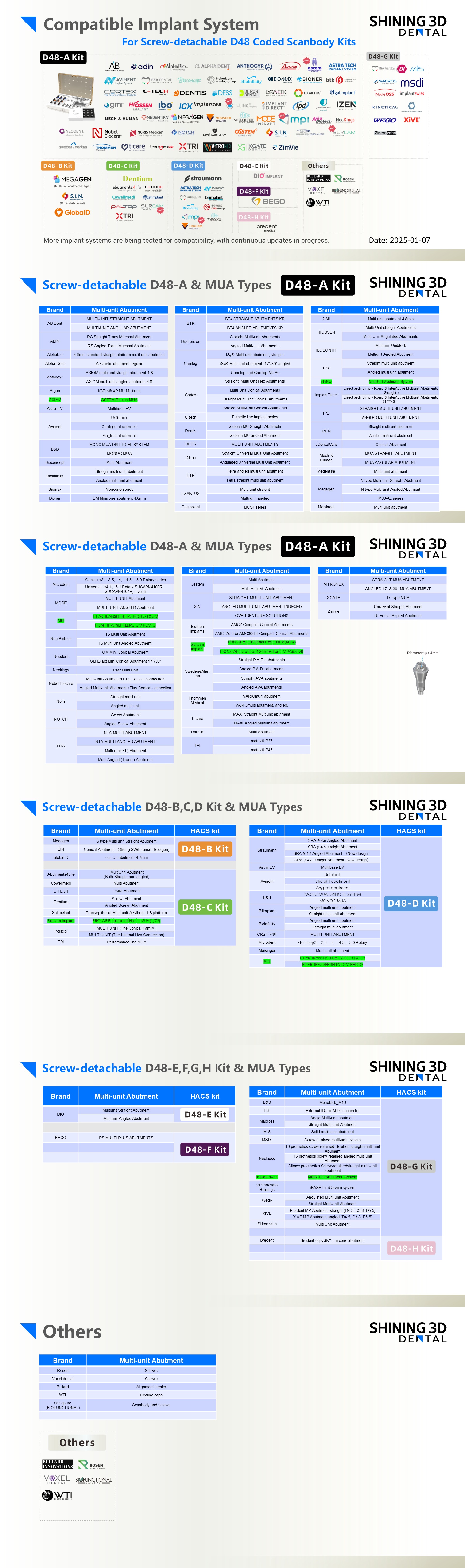 Currently, the Aoralscan Elite high-accuracy coded scan bodies can only be mounted on multi-unit abutments. Here is a list of all tested brands and types for now. More implant systems are being tested for compatibility so the list will keep growing. There are also some instructions for how to find the correct Coded scanbody kit for the MUAs you are using.