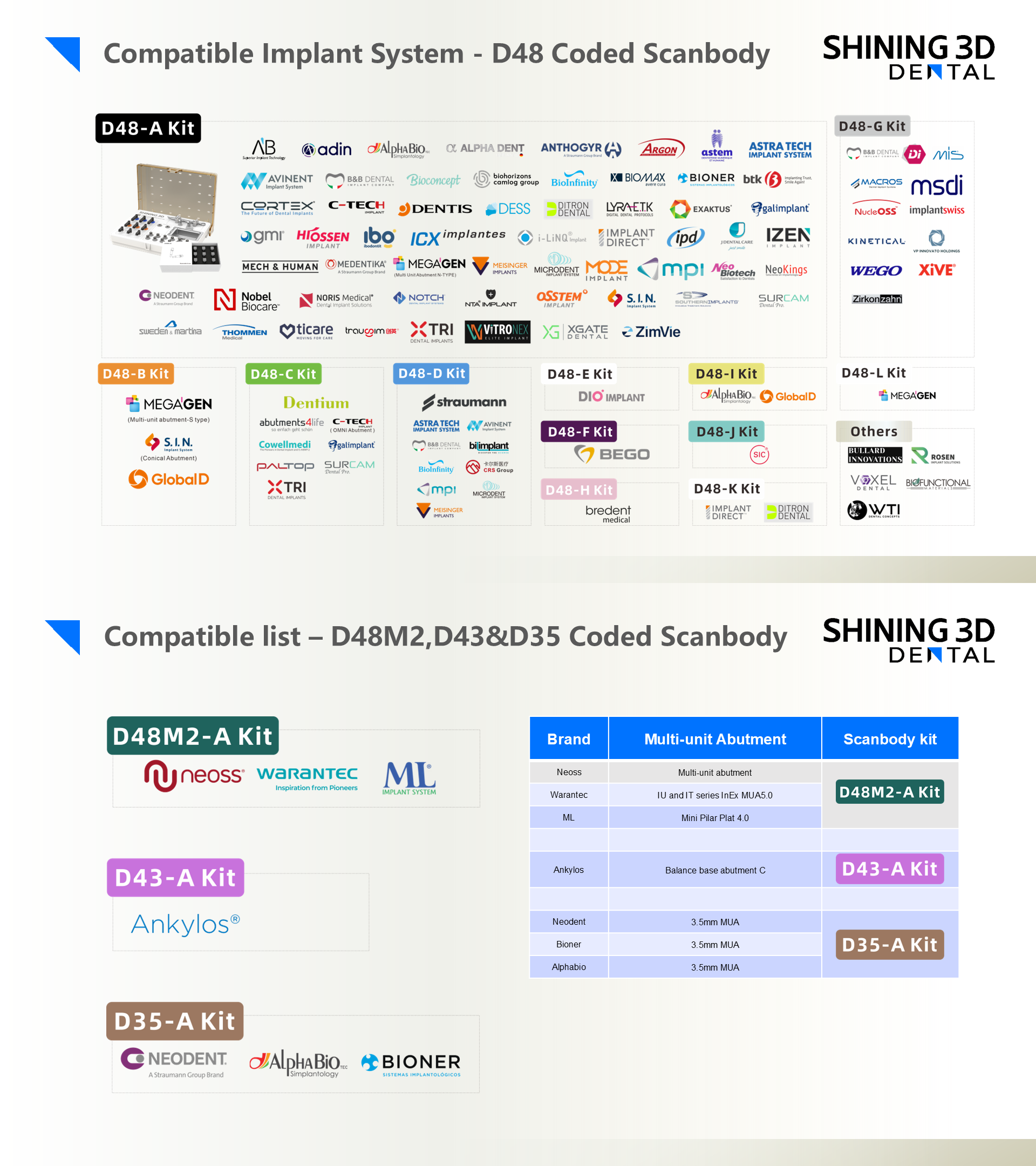 This article provides the latest Implant system and Multi-unit abutment compatibility information officially released by Shining 3D and is continuously updated based on testing results.