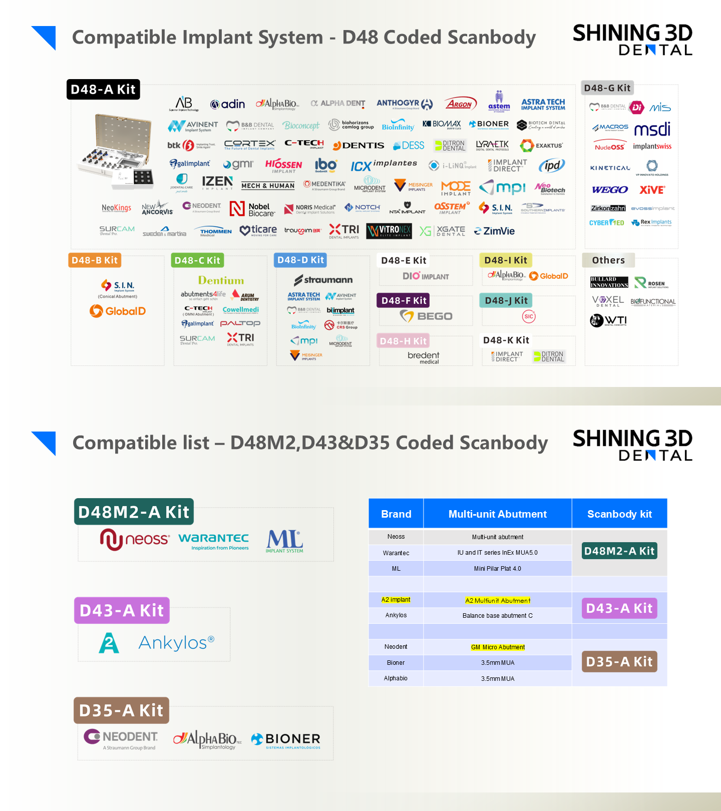 This article provides the latest Implant system and Multi-unit abutment compatibility information officially released by Shining 3D and is continuously updated based on testing results.