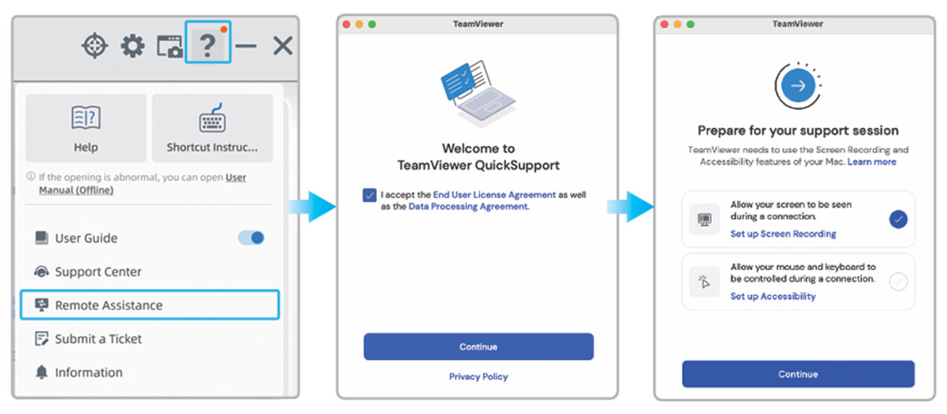 To be able to remotely connect with you via TeamViewer, please do the below steps if it is the first time connecting to support.