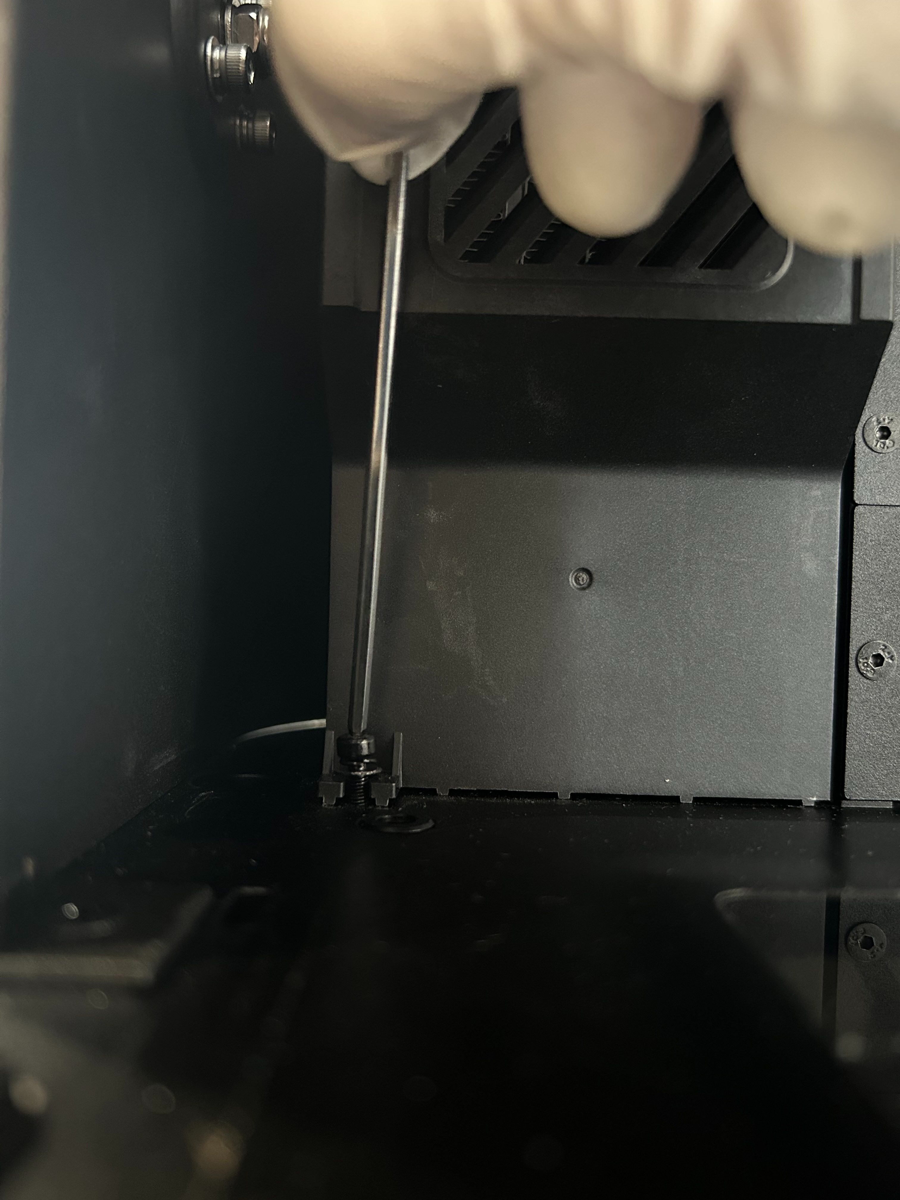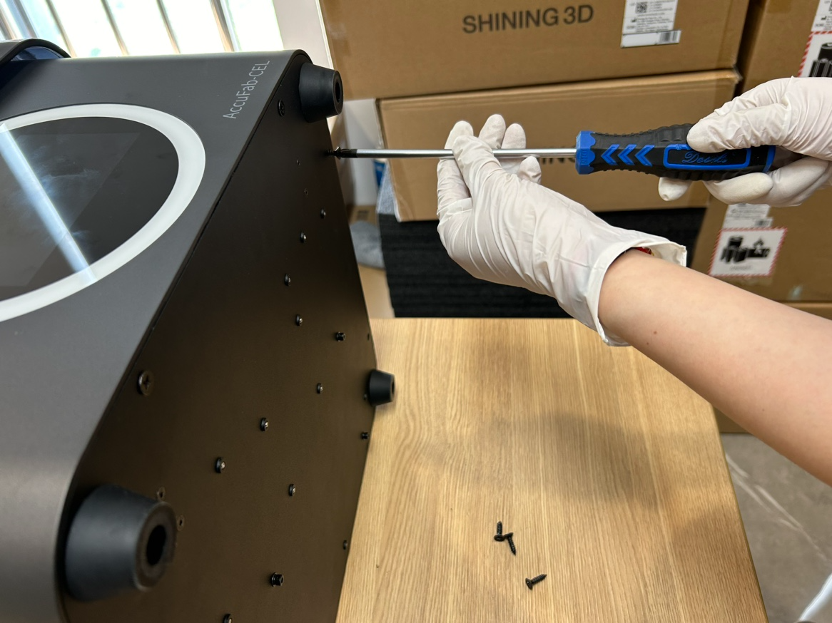 Prepare el AccuFab-L4D y un espacio de trabajo libre de polvo para limpiar los filtros del ventilador. Prepare espacio adicional para guardar las carcasas trasera y lateral de la impresora durante el mantenimiento.