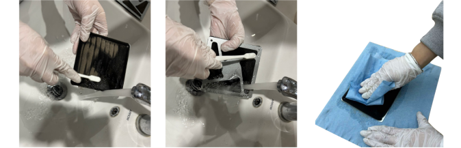 Use un papel de limpieza limpio para absorber el exceso de agua y luego deje que se sequen al aire. También puede usar un secador de pelo para acelerar el proceso de secado.