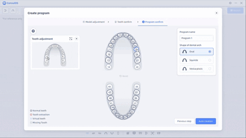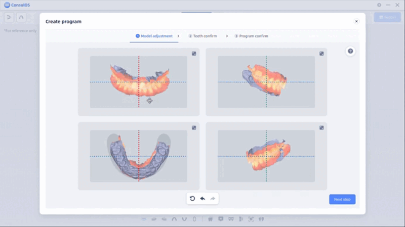 En la etapa de vista previa, los usuarios pueden hacer clic en “model adjustment” o “teeth confirm” en la esquina superior izquierda para volver a la etapa de creación.