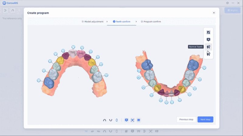 Haga clic en el botón “next step” para pasar al módulo de confirmación de dientes.