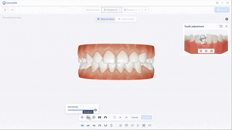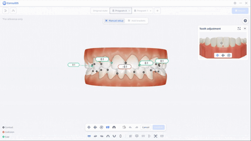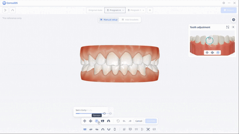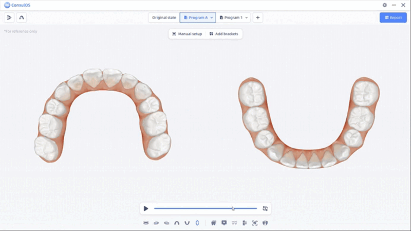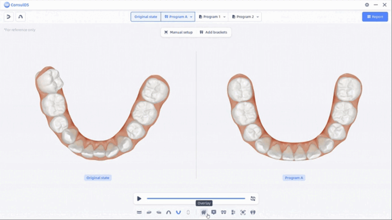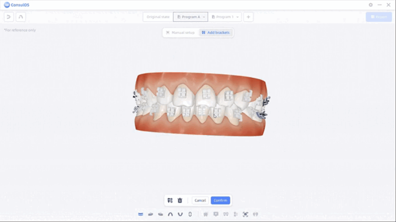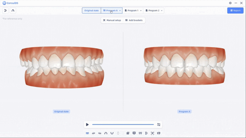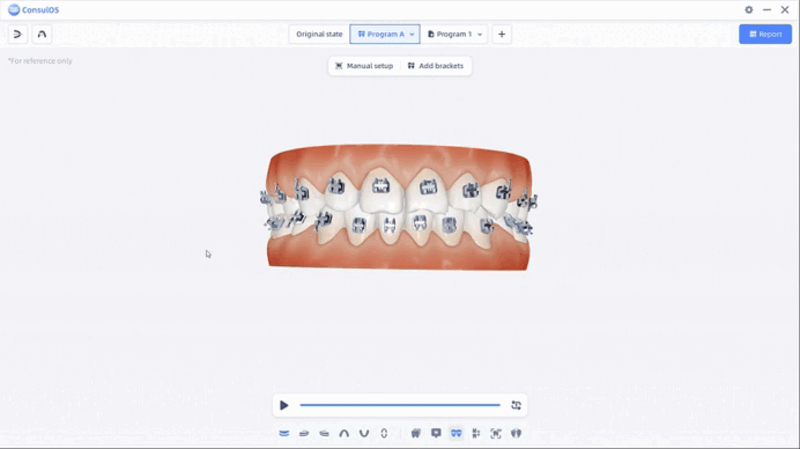 Ortho Simulation tiene como objetivo crear y presentar programas de tratamiento ortodóncico, además de generar reportes correspondientes para usuarios y pacientes, con el fin de mejorar la comprensión y aceptación del tratamiento por parte del paciente y reducir la necesidad de revisiones del plan de tratamiento.