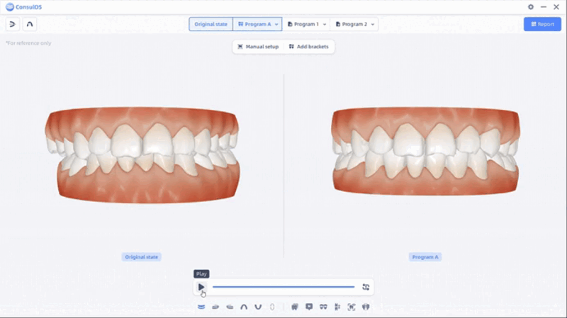 Haga clic en el botón “play” para mostrar la animación de la simulación ortodóncica.