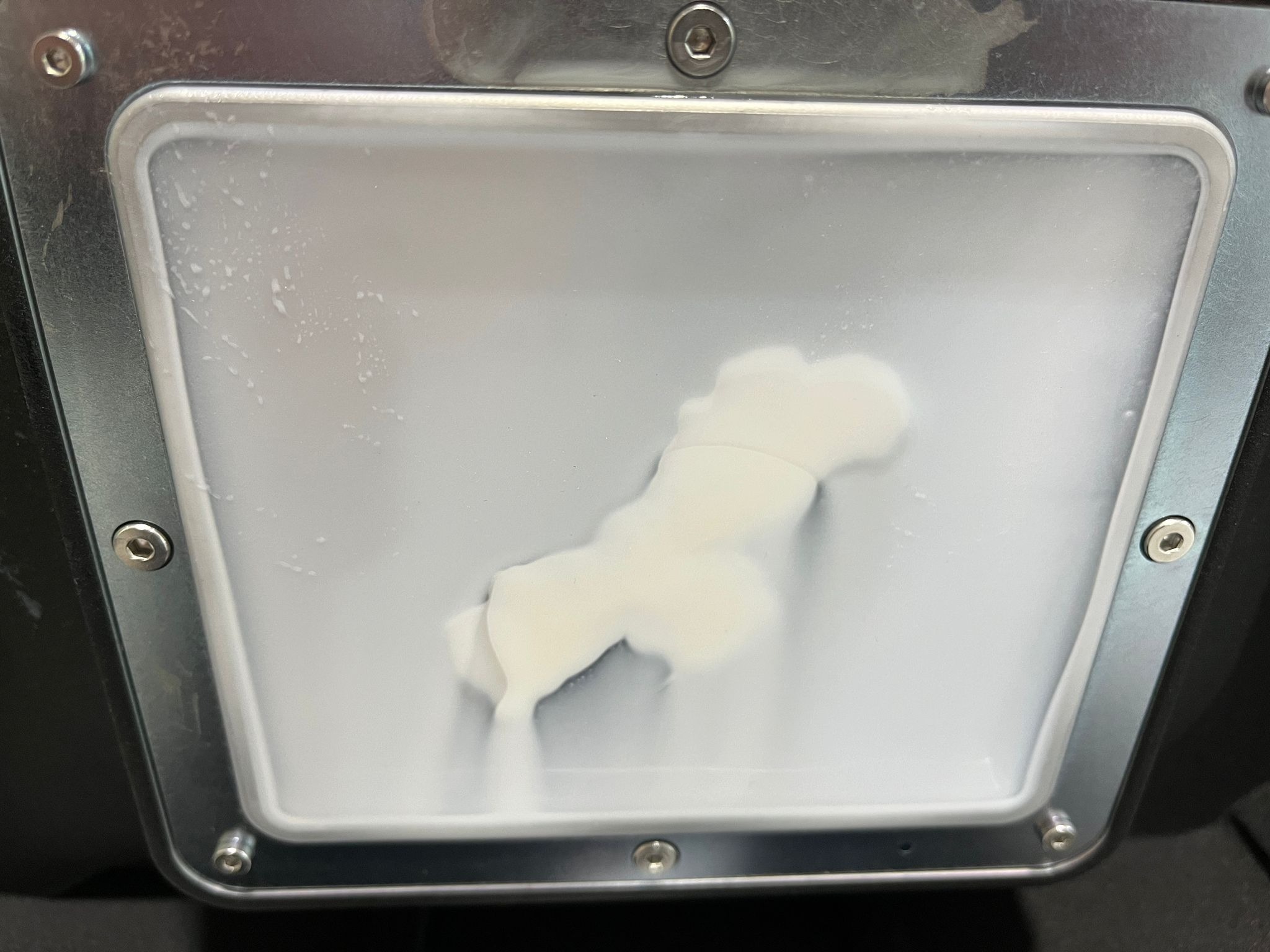 c) Fallo de impresión debido a resina atrapada en el modelo