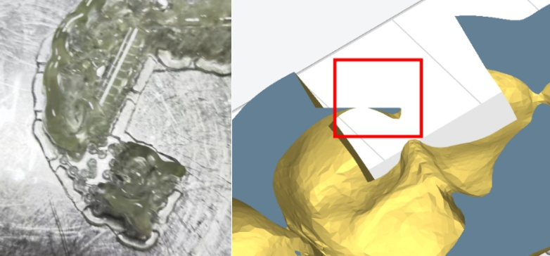 Solución: Utilice software para añadir soportes de forma automática o manual para garantizar una impresión correcta.