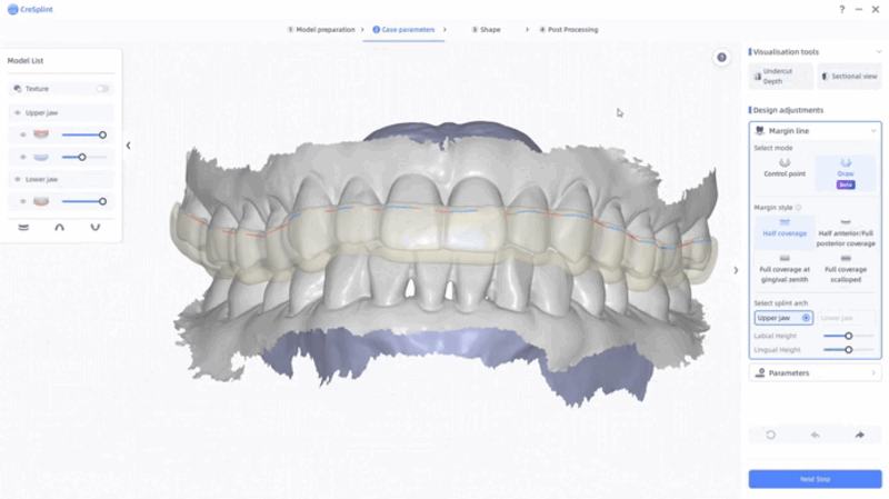 En la etapa de creación rápida, el software solicita al usuario definir un estilo de línea de margen. El estilo puede seleccionarse según la situación clínica real. En general, estos estilos pueden aplicarse a distintos casos: