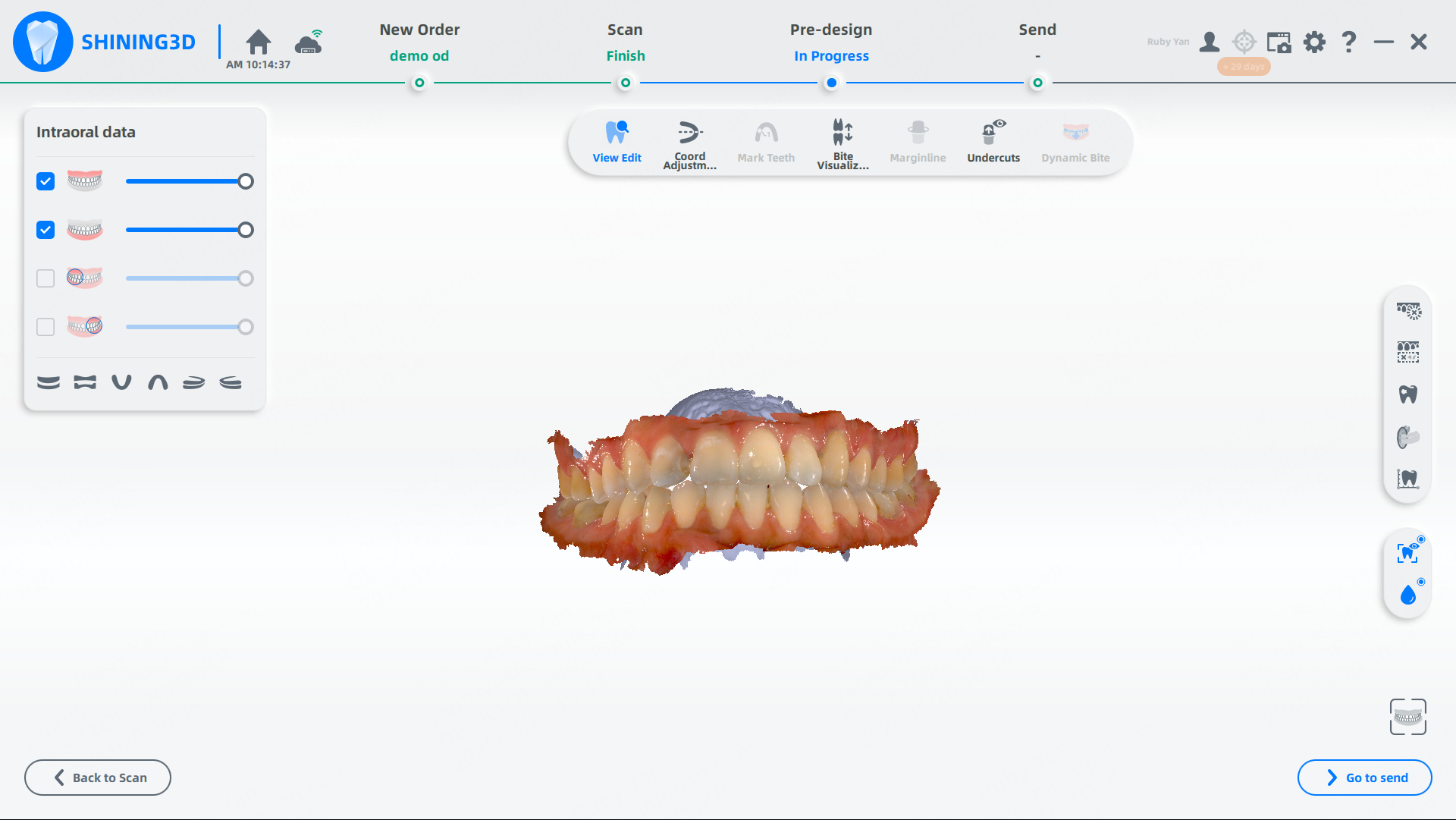 Adquiera los datos orales utilizando los productos de la serie Aoralscan. Asegúrese de que los datos cumplan con los siguientes requisitos: