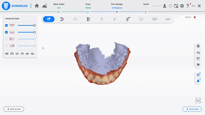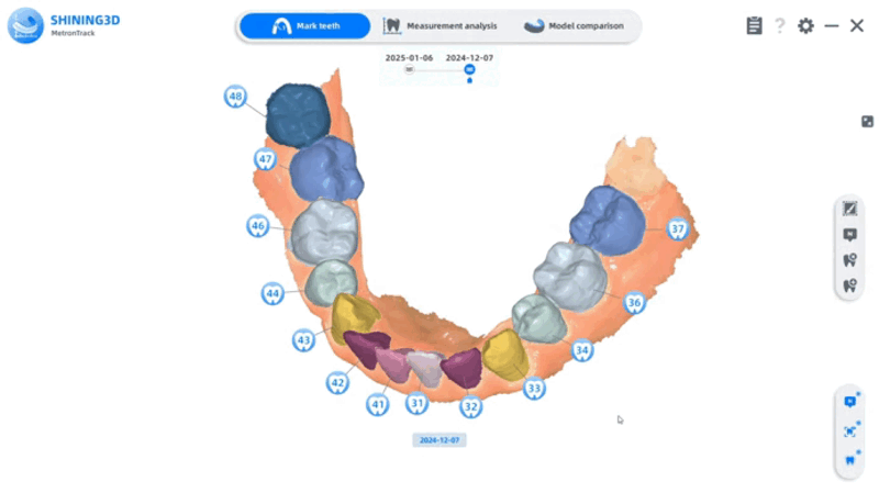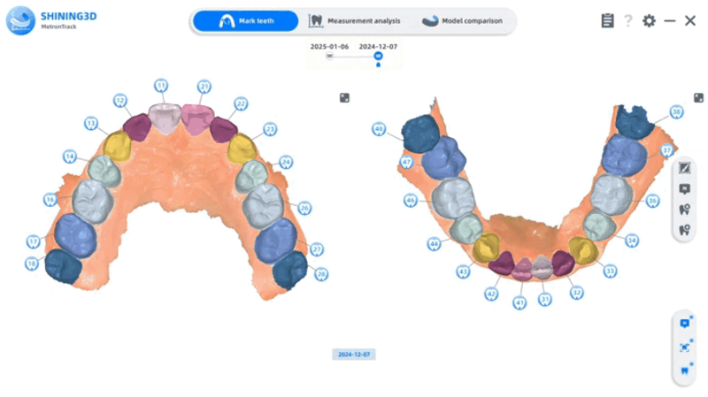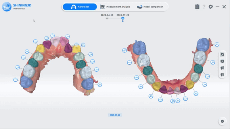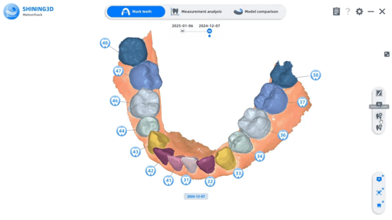 Después de la segmentación automática, puede revisar los resultados en la etapa de marcado de dientes.