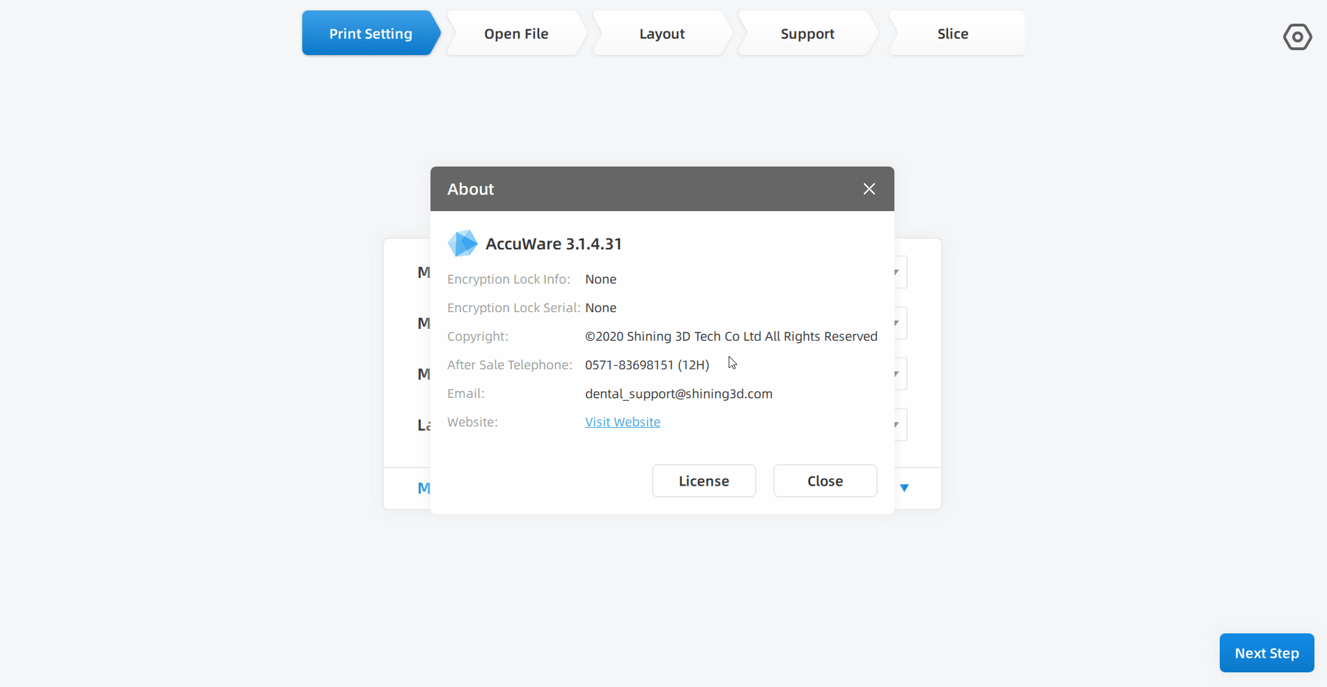 Step2: 「System Setting→About→License」をクリックします