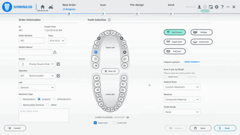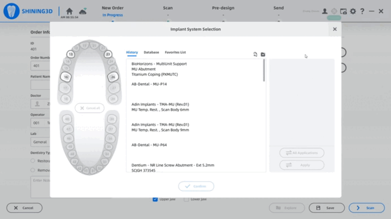 その後、スキャンボディデータをインポートし、データベースで確認できます。