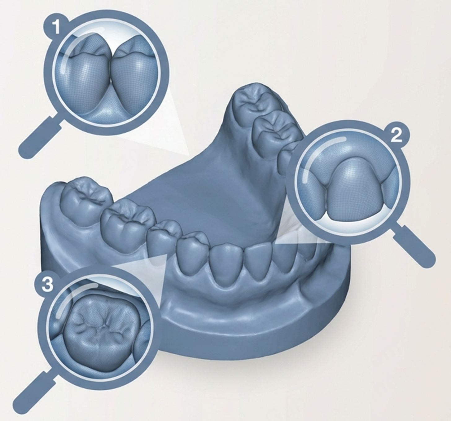 Por isso, iniciamos sempre pela face oclusal — ela funciona como nosso mapa de orientação para o alinhamento dos dados.