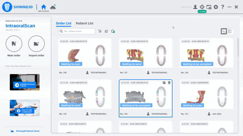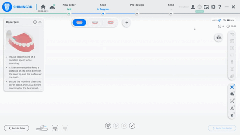 Aqui, um modelo para uma coroa unitária foi aplicado como exemplo. O dente 16 foi preparado para o design, e é necessário coletar dados completos e claros para o dente 16.