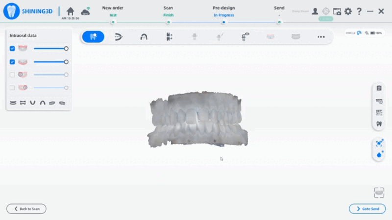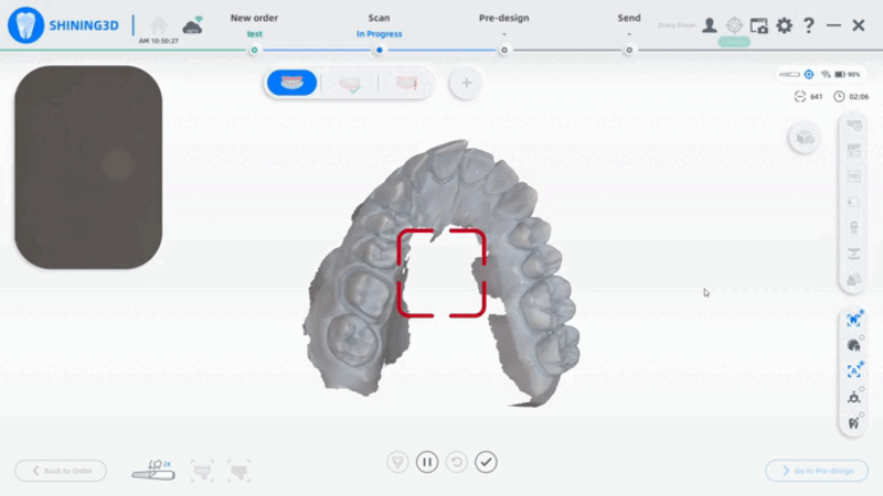 Após finalizar o escaneamento, a função de refined area será executada automaticamente e auxiliará os usuários a reconhecerem a região correspondente ao dente 16 (no nosso exemplo).