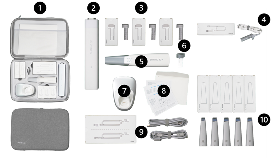 В комплект поставки AoralScan 3 Wireless входят 2 упаковки. Пользователи могут ознакомиться с их содержимым по приведенному ниже списку.